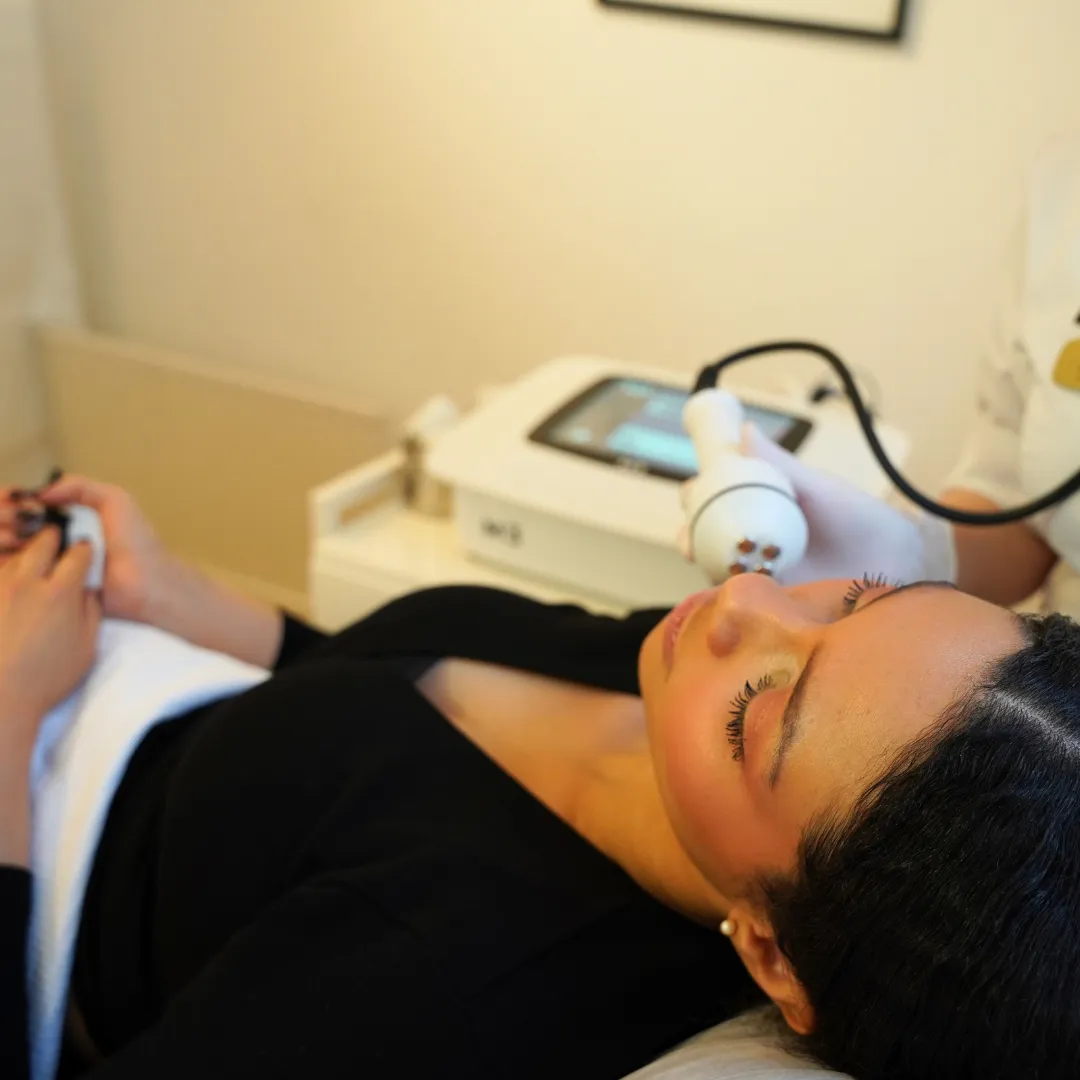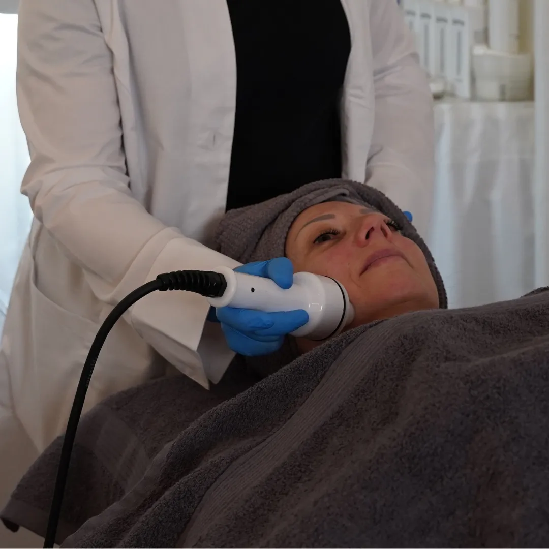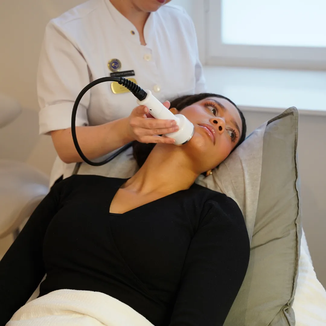 Til slutt avsluttes behandlingen med en radiofrekvensbehandling rettet spesifikt mot haken som en ikke kirurgisk, men effektiv metode, lik et ansiktsløft. Ved å varme opp kollagenet i hudens dypere lag, stimulerer radiofrekvensbehandlingen produksjonen av nytt kollagen.